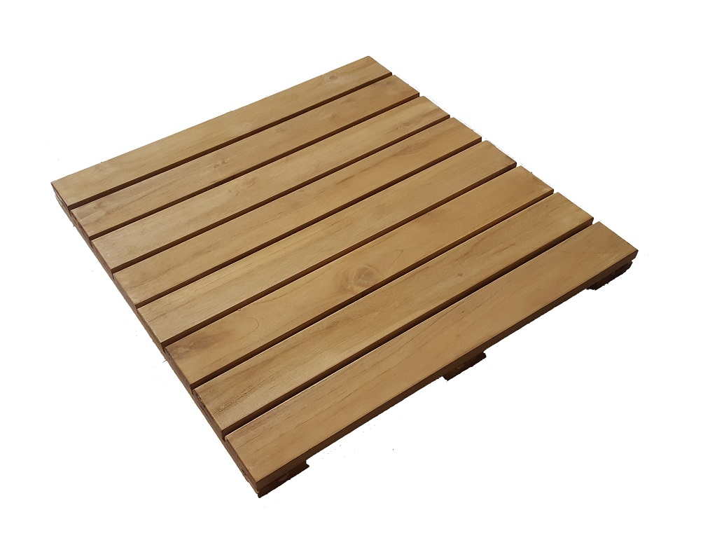 Den idealiska lösningen för altaner, förtält, balkonger, uteplatser, badrum och runt pooler. Vår teakplatta är av högsta kvalitet och tål att ligga ute året runt i många år med ett minimum av skötsel.